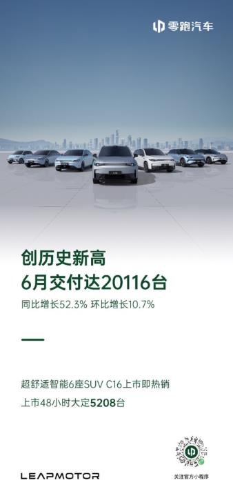 7月1日,零跑汽车公布最新交付数据:2024年6月,零跑汽车交付达20116台,首次迈入“两万俱乐部”、创历史新高!至此,零跑汽车2024年上半年累计交付量达86696台。凭借深厚的产品实力、技术优势稳居中国市场新能源全品牌头部阵营,新势力第一梯队。随着家庭用车需求日益多元化,六座SUV以其灵活的座...查看详情